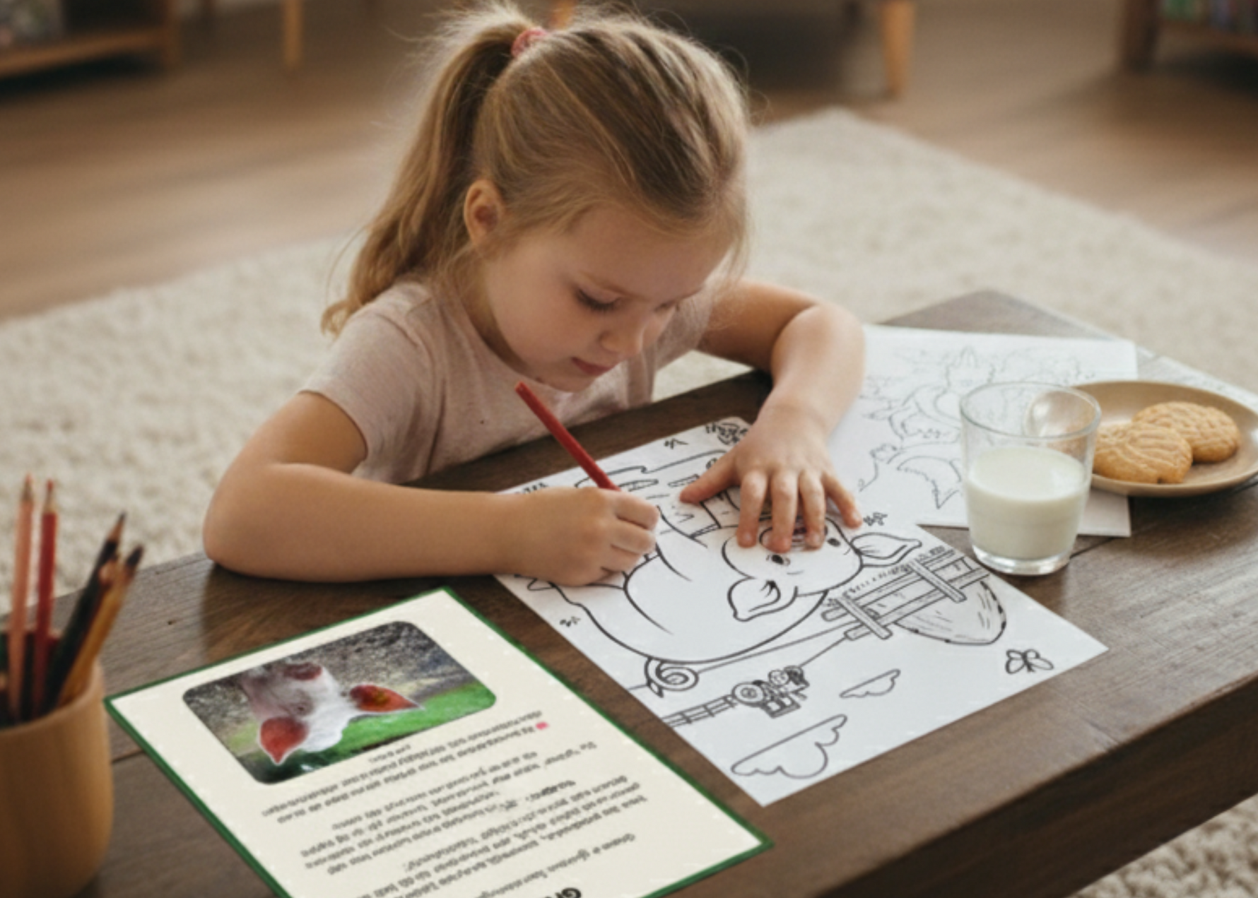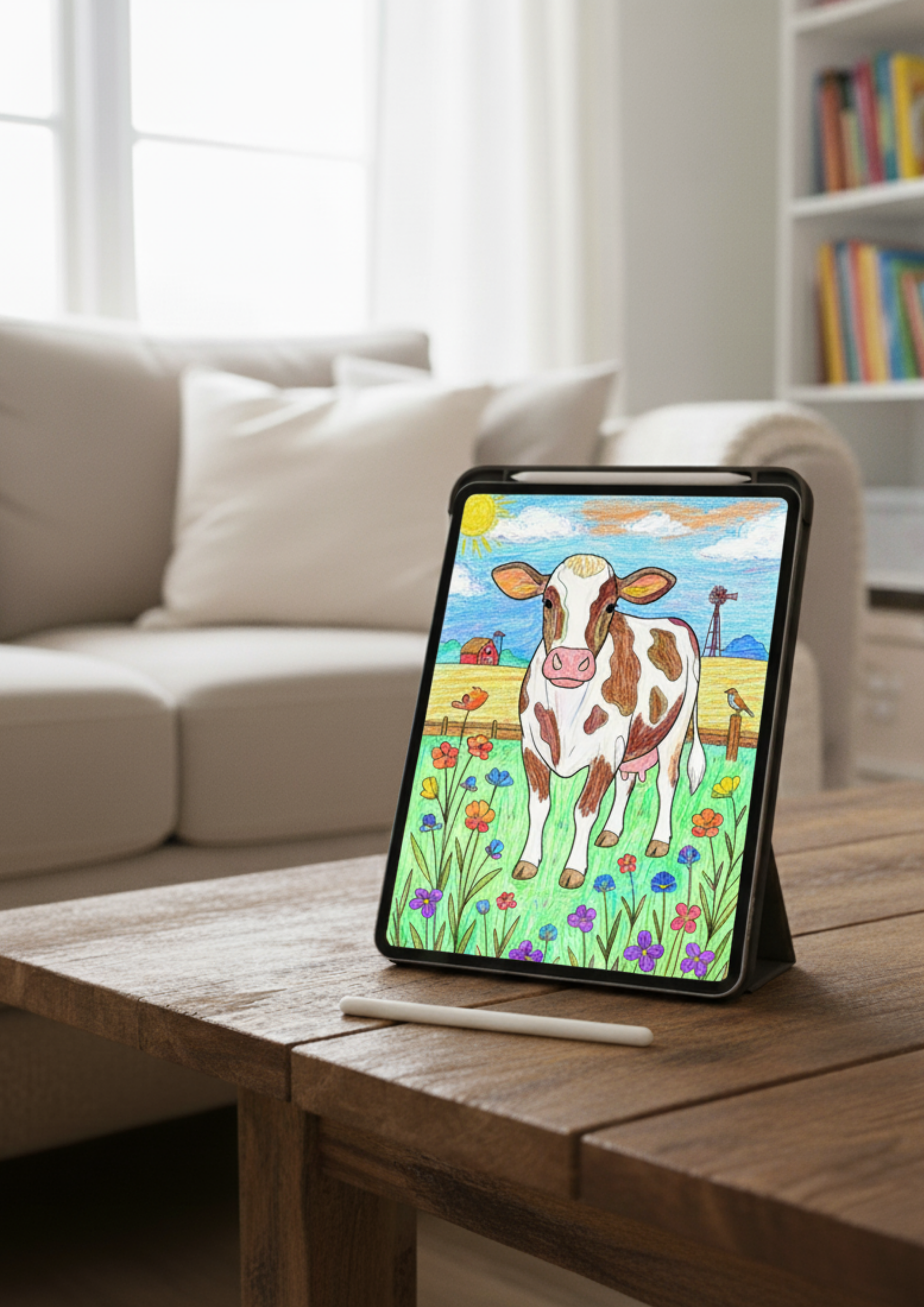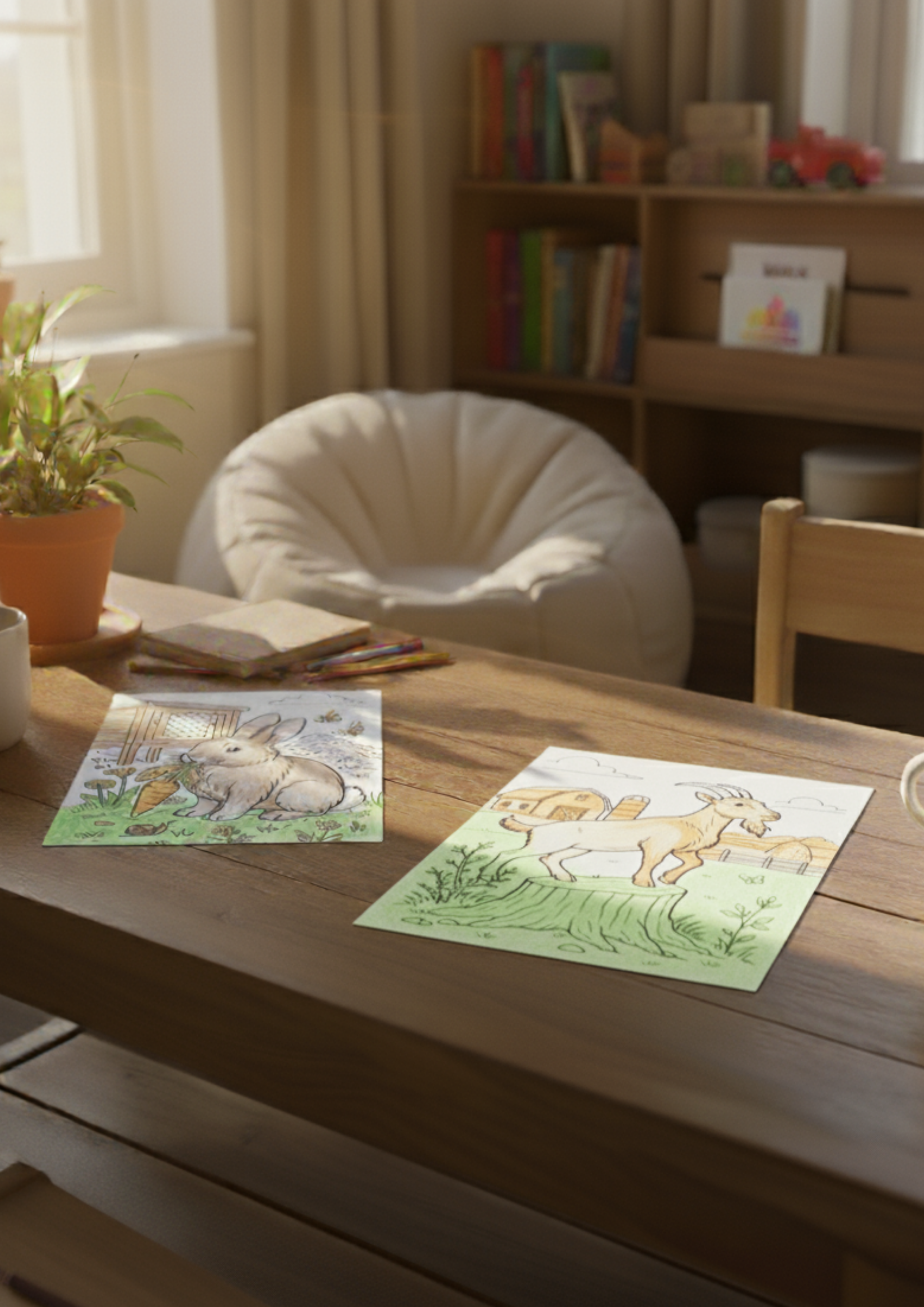Här får de färglägga tolv olika bondgårdsdjur, som häst, ko, gris och kanin, samtidigt som de lär sig roliga fakta. Boken är anpassad för barn 4–10 år och levereras som PDF, redo att användas på surfplatta eller skrivas ut hemma.