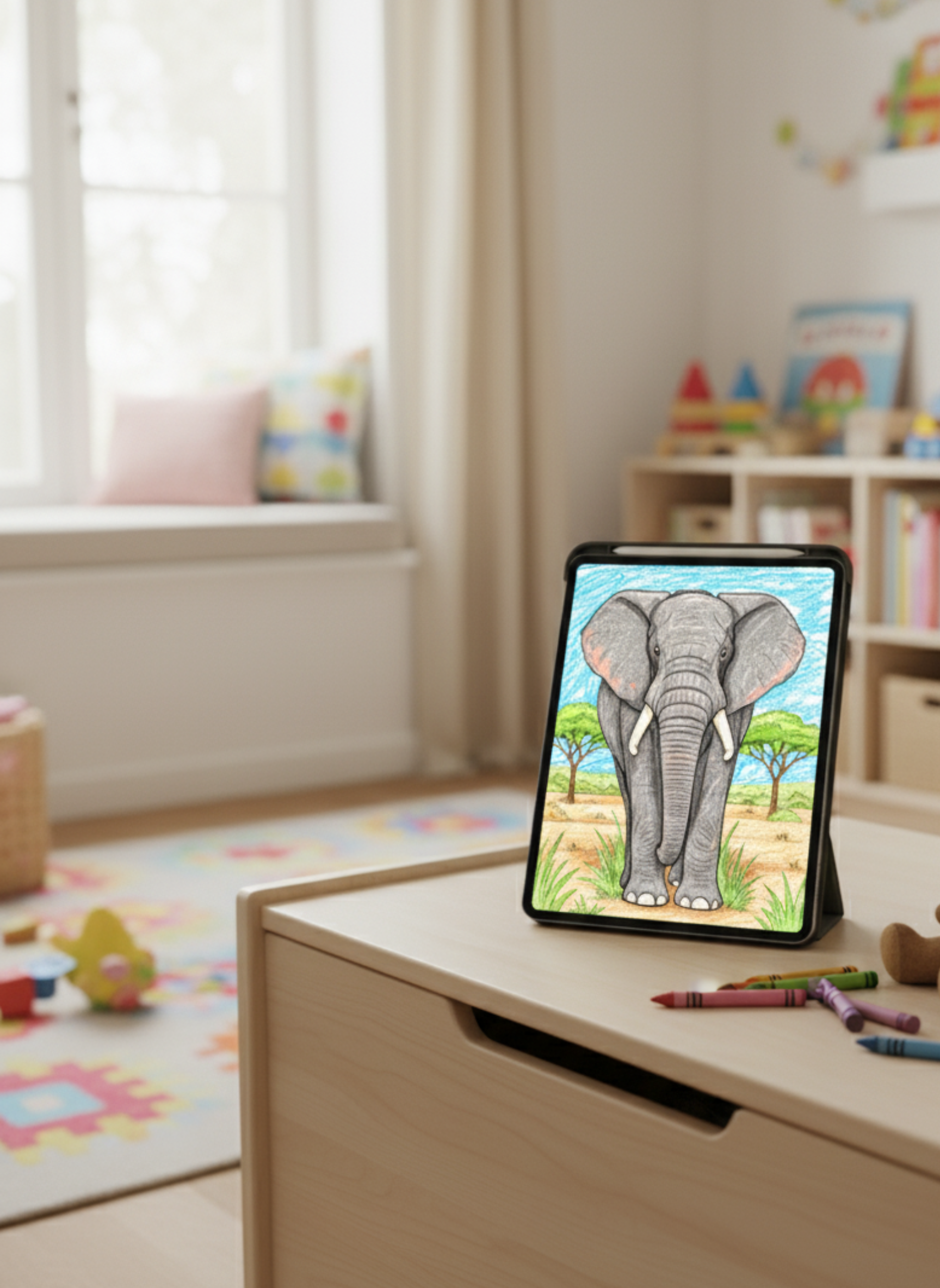 Nu kan barnen börja färglägga direkt på platta eller telefon med fingret eller touchpenna.