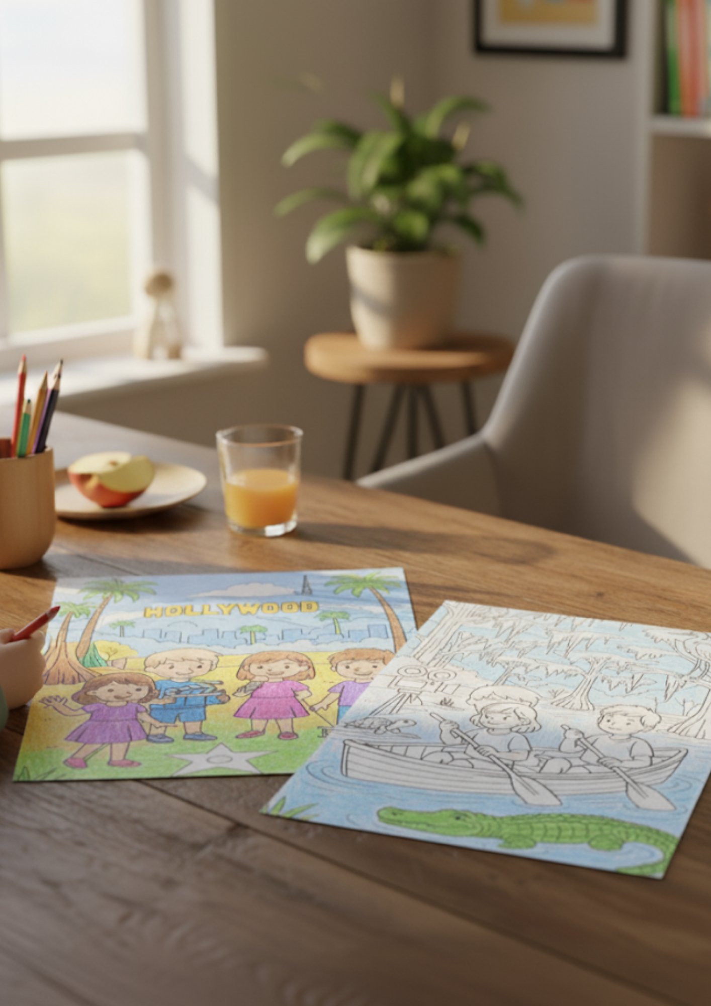 Res genom Nordamerika tar barnen med på en färgstark resa från Mexikos marknader och mayaruiner till Alaskas glaciärer och Hawaiis vulkaner. Med 30 målarbilder och lika många faktasidor får barn 4–10 år upptäcka flaggor, platser och kulturer på ett lekfullt sätt. Levereras som PDF, redo för surfplatta eller utskrift.